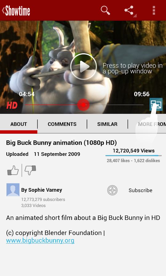 Overview: We are pleased to announce our new and improved online video player. Showtime is an innovative video player that has many features and you can search videos from YouTube. With the Pop-up player, you can play a video and use any other android app for those of you who like to multi-task. You can also play with fullscreen or minimise the playing video to the notification tray. If your device is powerful enough, you can open multiple Pop-up windows. This app has the following features to give you the best seamless and intuitive experience.